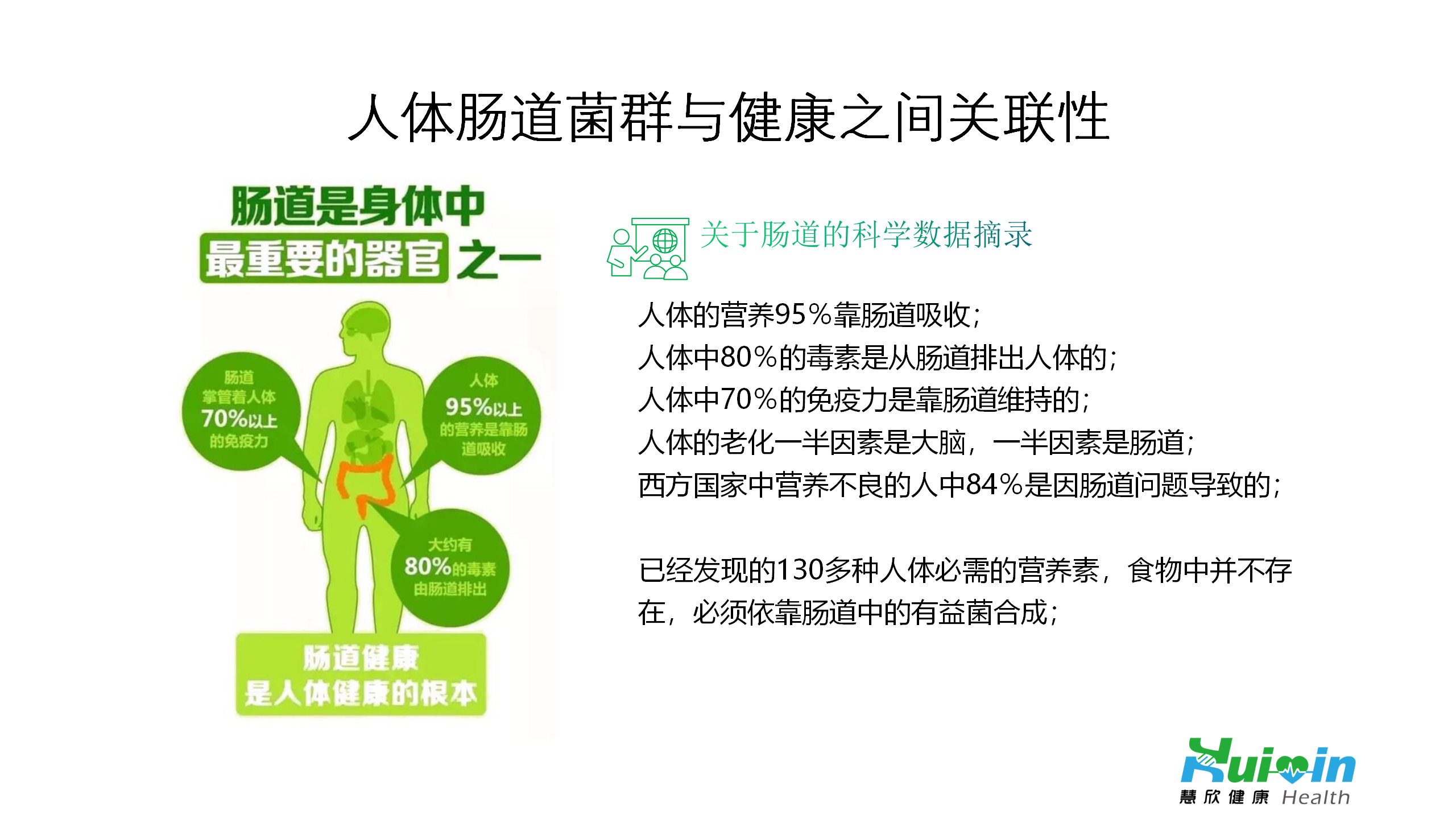 基于目前国际研究热点的肠道微生态领域,慧欣健康与国内知名企业华大基因合作,在肠道菌群基因检测基础上,共同研发针对不同人群的肠道微生态制剂,细分领域涉及在肥胖、痛风、糖尿病、慢性胃肠道疾病、女性妇科疾病等人群。